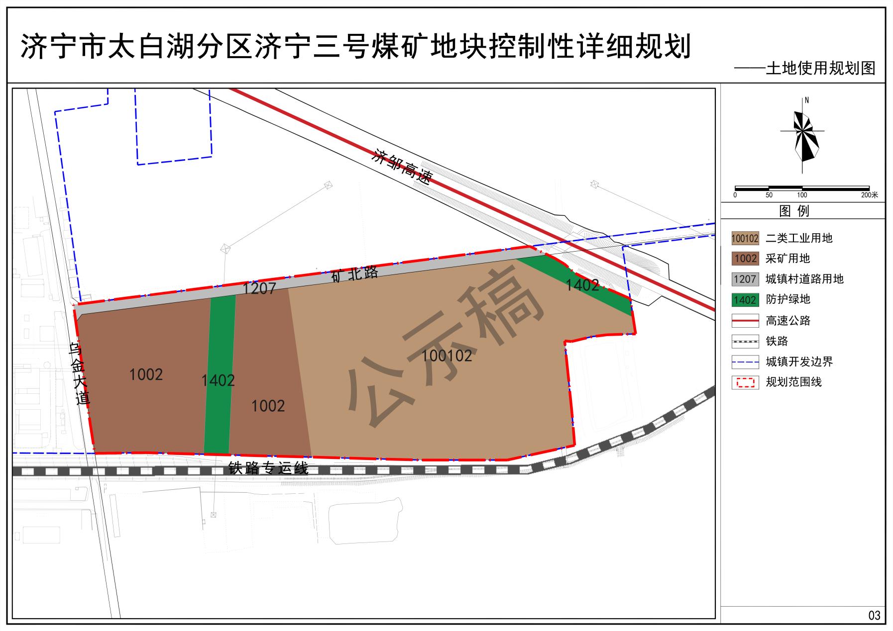 为加强公众参与,发挥公众在我市规划管理中的作用,推进政务公开和依法行政,提高规划的科学性、可行性和可操作性,根据《中华人民共和国城乡规划法》《山东省城乡规划条例》等法律法规和政务公开的有关规定,按照《山东省人民政府关于〈济宁市国土空间总体规划(2021—2035年)〉的批复》(鲁政字〔2023〕194号)等要求,现依法对《济宁市太白湖分区济宁三号煤矿地块控制性详细规划(草案)》规划内容进行社会公示,欢迎社会各界提出意见和建议。