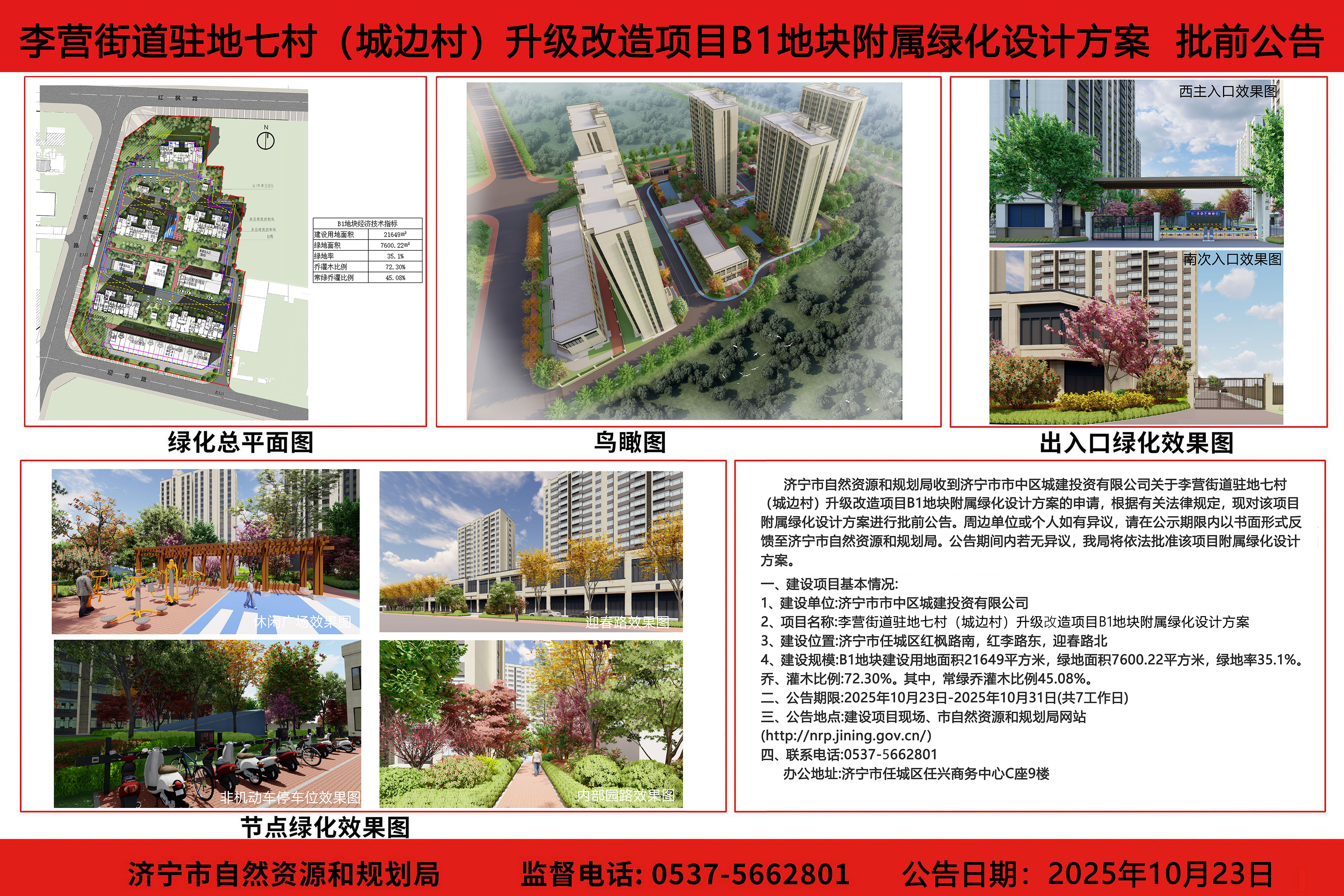 李营街道驻地七村(城边村)升级改造项目B1地块附属绿化设计方案批前公告