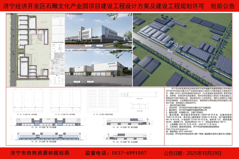 济宁经济开发区石雕文化产业园项目建设工程设计方案及建设工程规划许可批前公告