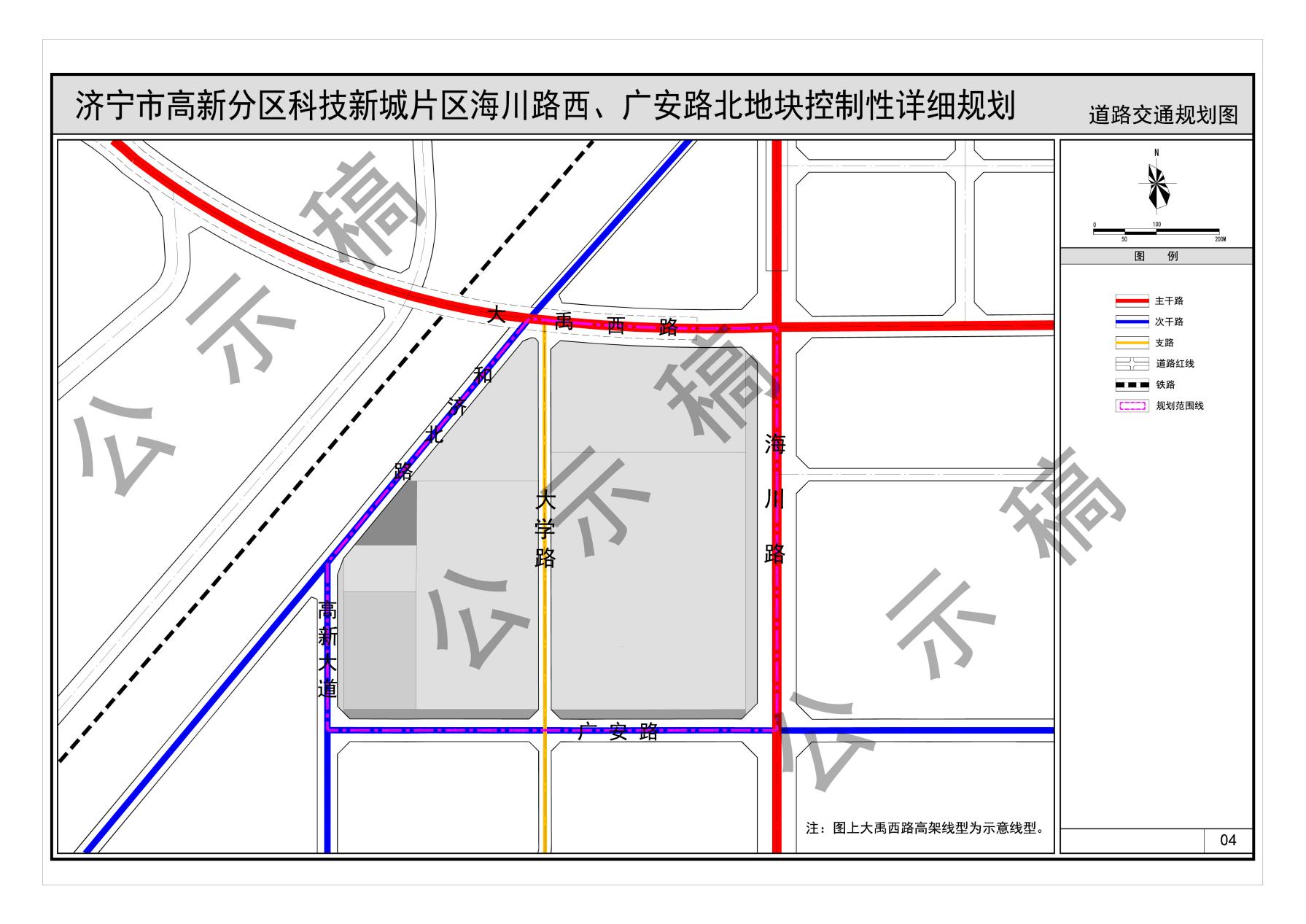 规划范围内海川路、大禹西路为主干路,广安路、高新大道、和济北路为次干路,大学路为支路。