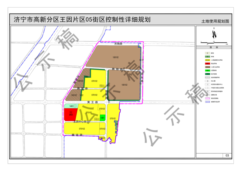为加强公众参与,发挥公众在我市规划管理中的作用,推进政务公开和依法行政,提高规划的科学性、可行性和可操作性,根据《中华人民共和国城乡规划法》《山东省城乡规划条例》等法律、法规和政务公开的有关规定,按照《山东省人民政府关于〈济宁市国土空间总体规划(2021—2035年)〉的批复》(鲁政字〔2023〕194号)等要求,现依法对《济宁市高新分区王因片区05街区控制性详细规划》(草案)规划内容进行社会公示,欢迎社会各界提出意见和建议。