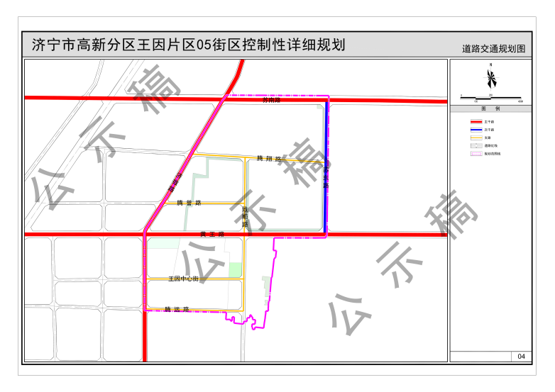 主干路:苏南路、黄王路、济微路。苏南路红线宽度60米,黄王路红线宽度44米,济微路红线宽度34米。