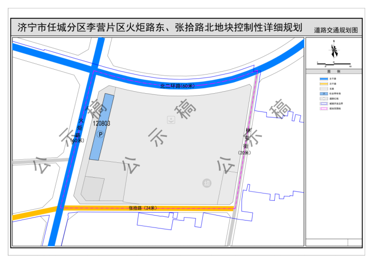 北二环路、火炬路为主干路,道路红线宽度60米,张拾路为次干路,道路红线宽度24米,林屯街为支路,道路红线宽度20米。