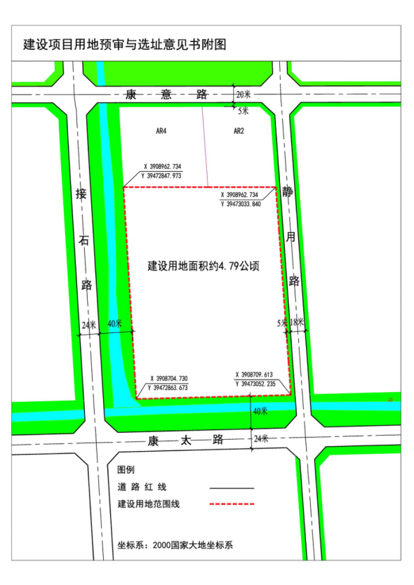建设项目拟选址位置:太白湖新区石桥镇前石村东至静月路;西至接石路,南至康太路;北至康意路。