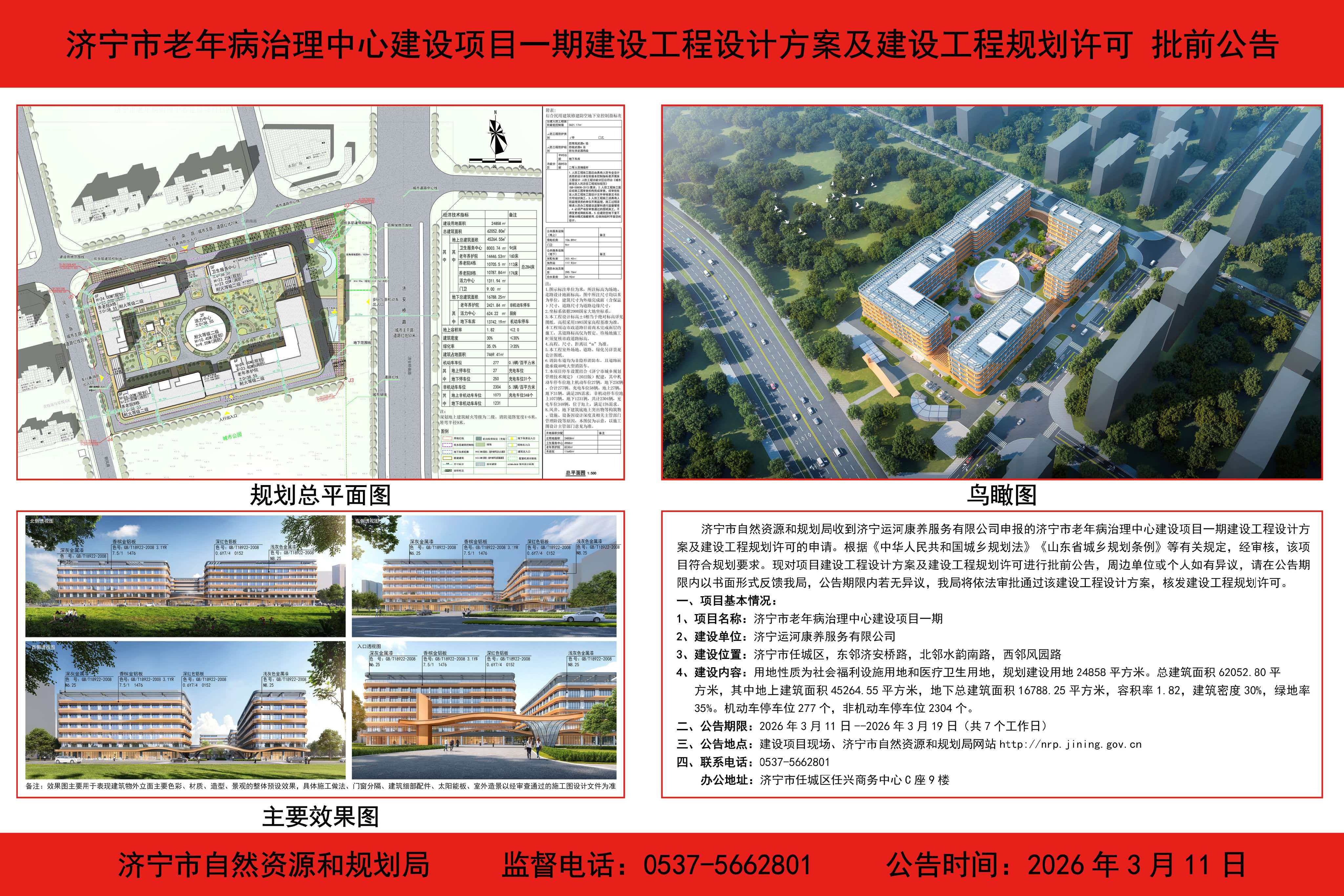 济宁市老年病治理中心建设项目一期建设工程设计方案及建设工程规划许可批前公告