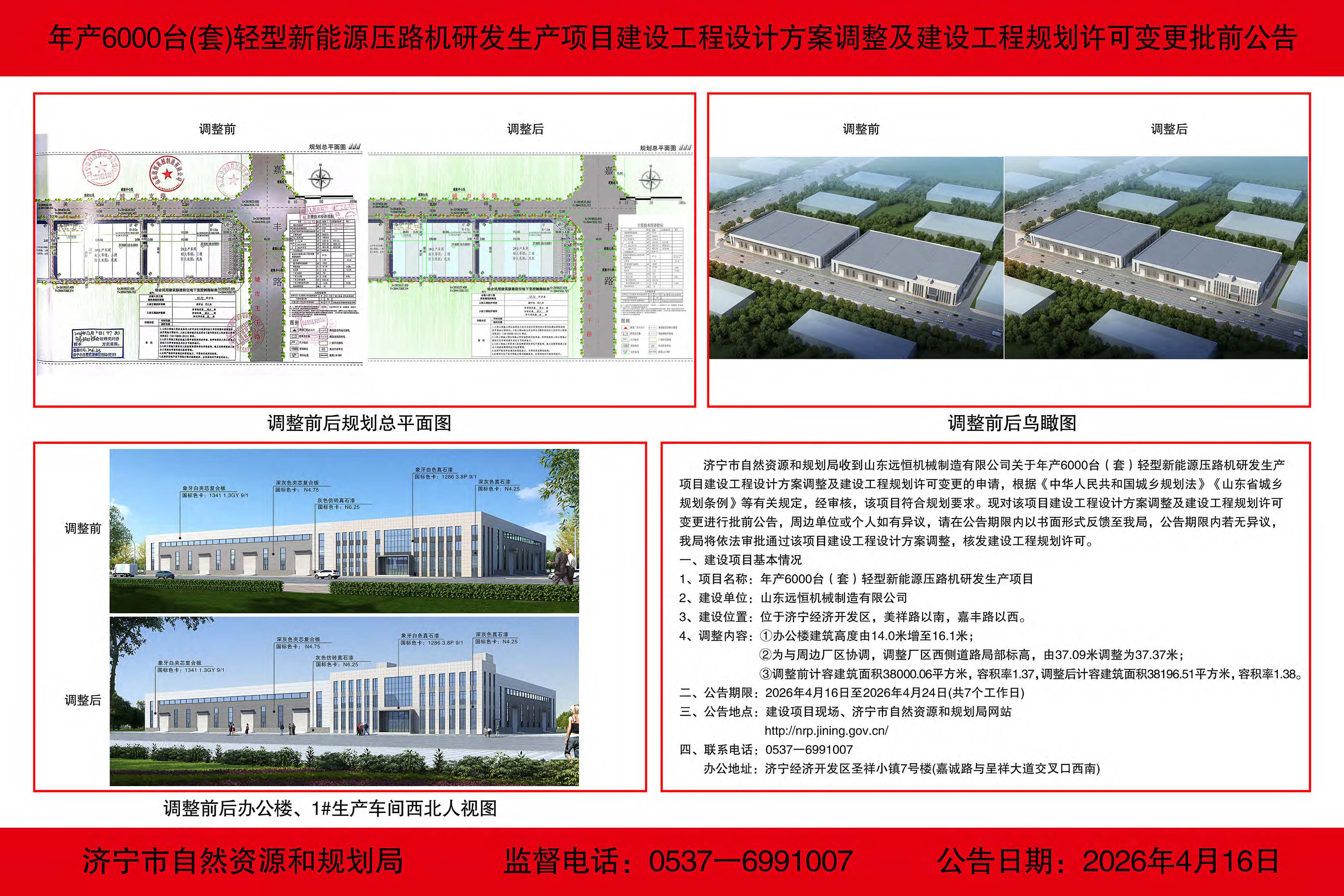 年产6000台(套)轻型新能源压路机研发生产项目建设工程设计方案调整及建设工程规划许可变更批前公告